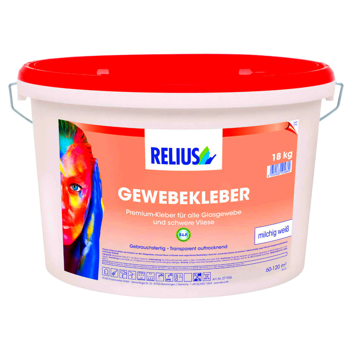 Relius Gewebekleber ist ein Gebrauchsfertiger, lösemittel- und weichmacherfreier, transparent auftrocknender Premium-Dispersionskleber zum Verkleben von allen Glasgeweben, schweren Glas- und Zellstoffvliesen und Tapeten sowie vergleichbarer Wandbeläge. Relius Gewebekleber bietet eine gleichmäßige, sehr leichte Verteilung, lange Offenzeit sowie erstklassige Anfangshaftung und Klebkraft.