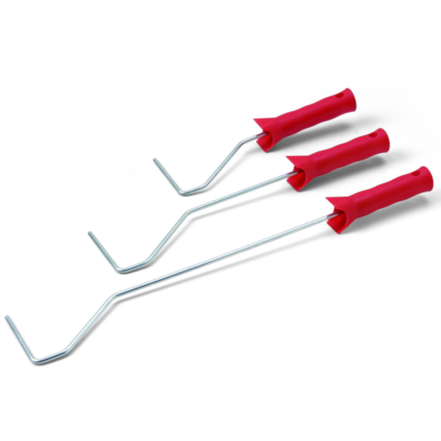 Hochglanzverzinkte Bügel mit ergonomischen Kunststoffgriffen, passend für alle Heizkörper- und Farbwalzen.