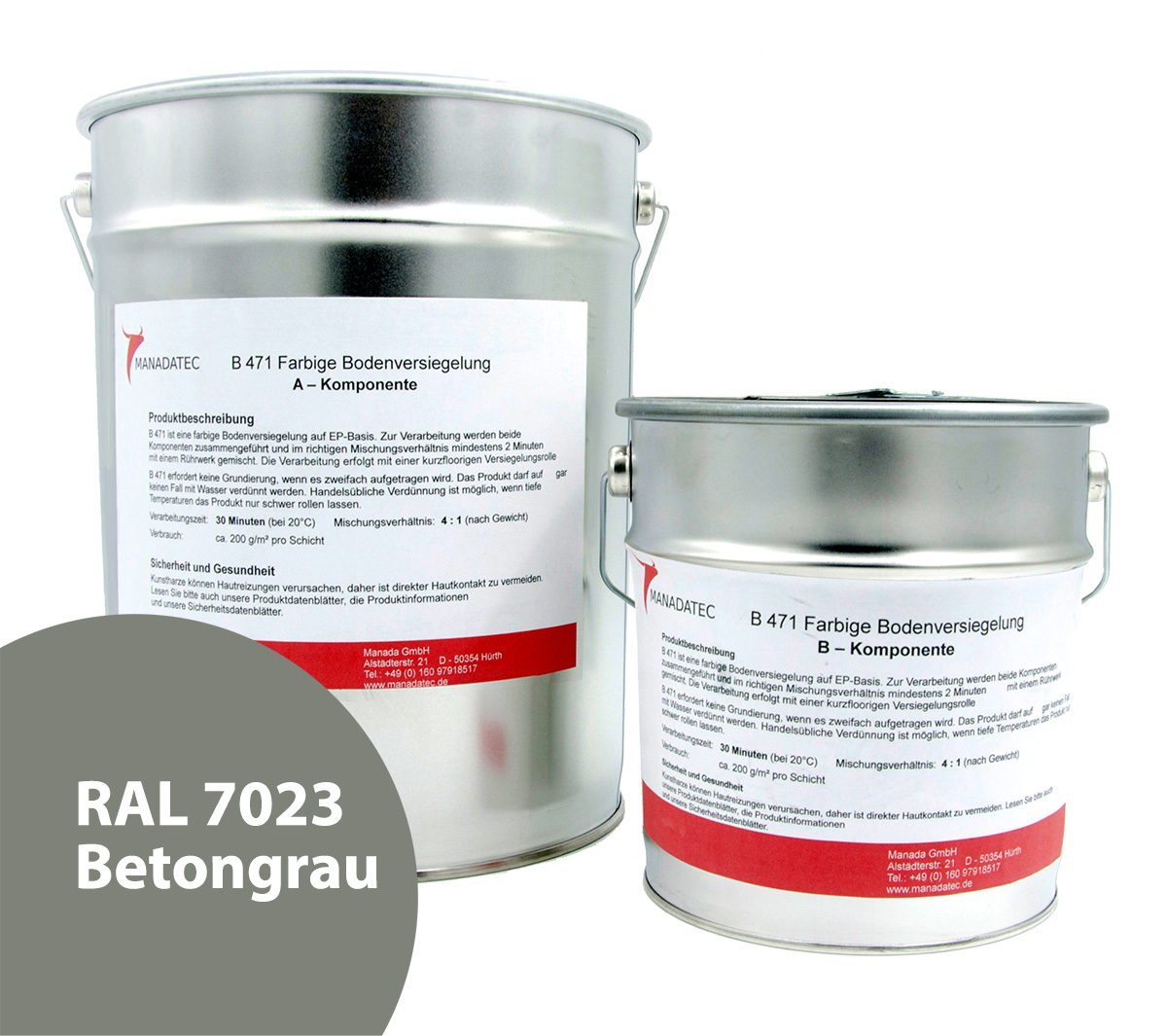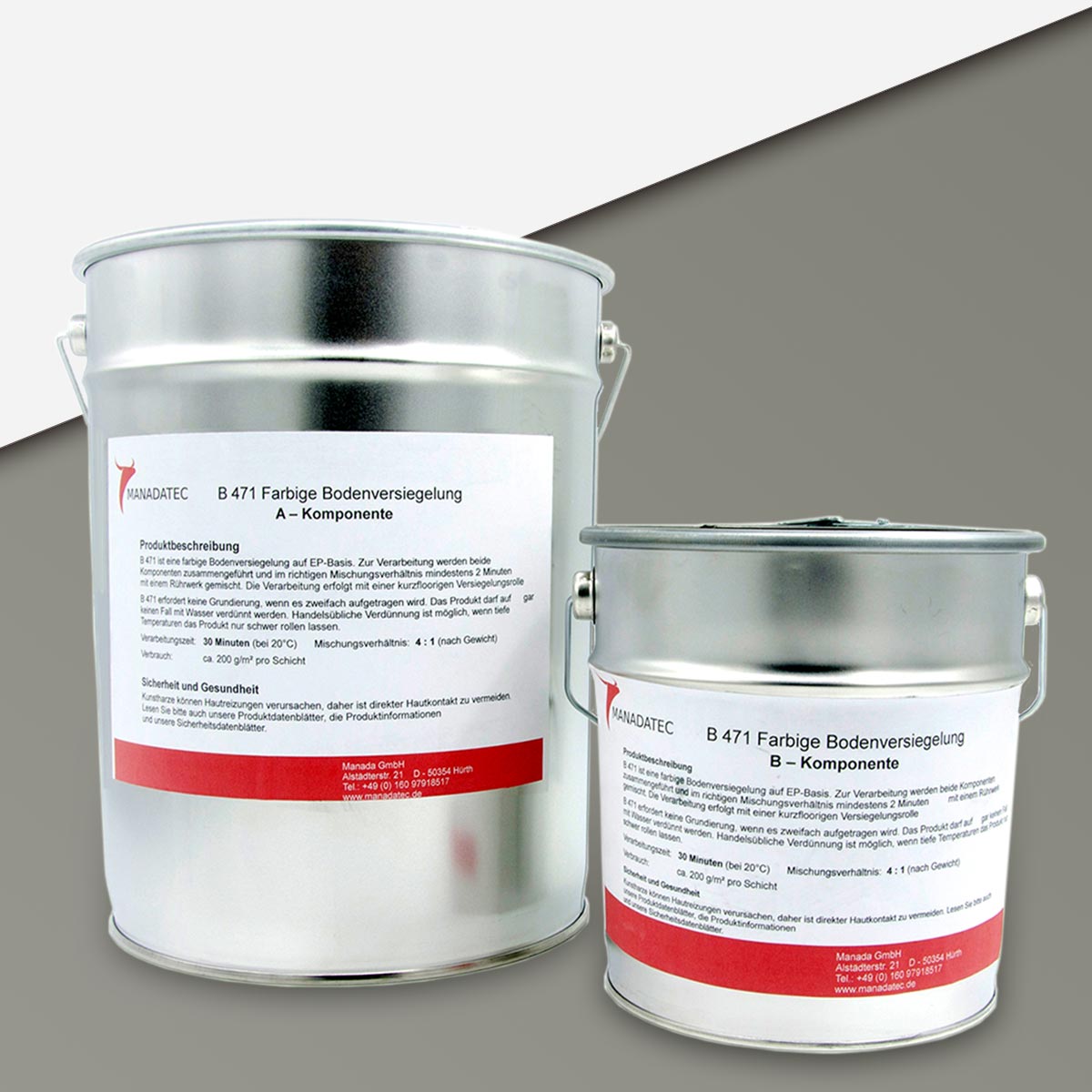 - 2K Epoxidharz Bodenbeschichtung Manadur B 471 in RAL 7023 Betongrau. Farbige 2-Komponenten Epoxidharz Bodenbeschichtung Roll-Bodenbeschichtung (zum Aufrollen).