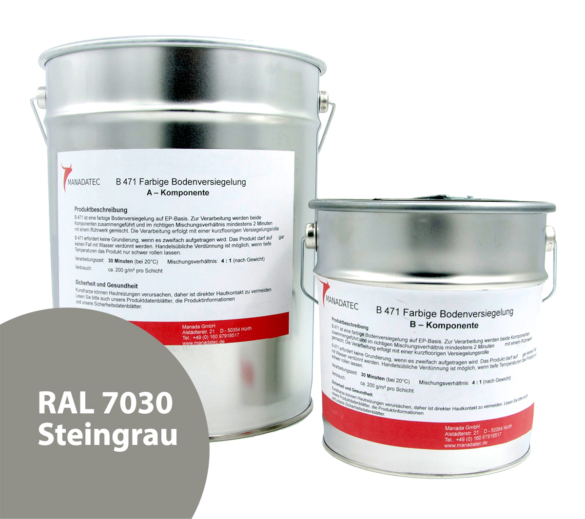 - 2K Epoxidharz Bodenbeschichtung Manadur B 471 in RAL 7030 Steingrau. Farbige 2-Komponenten Epoxidharz Bodenbeschichtung Roll-Bodenbeschichtung (zum Aufrollen).