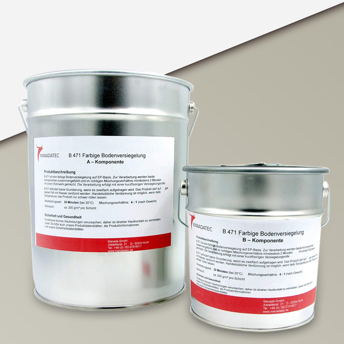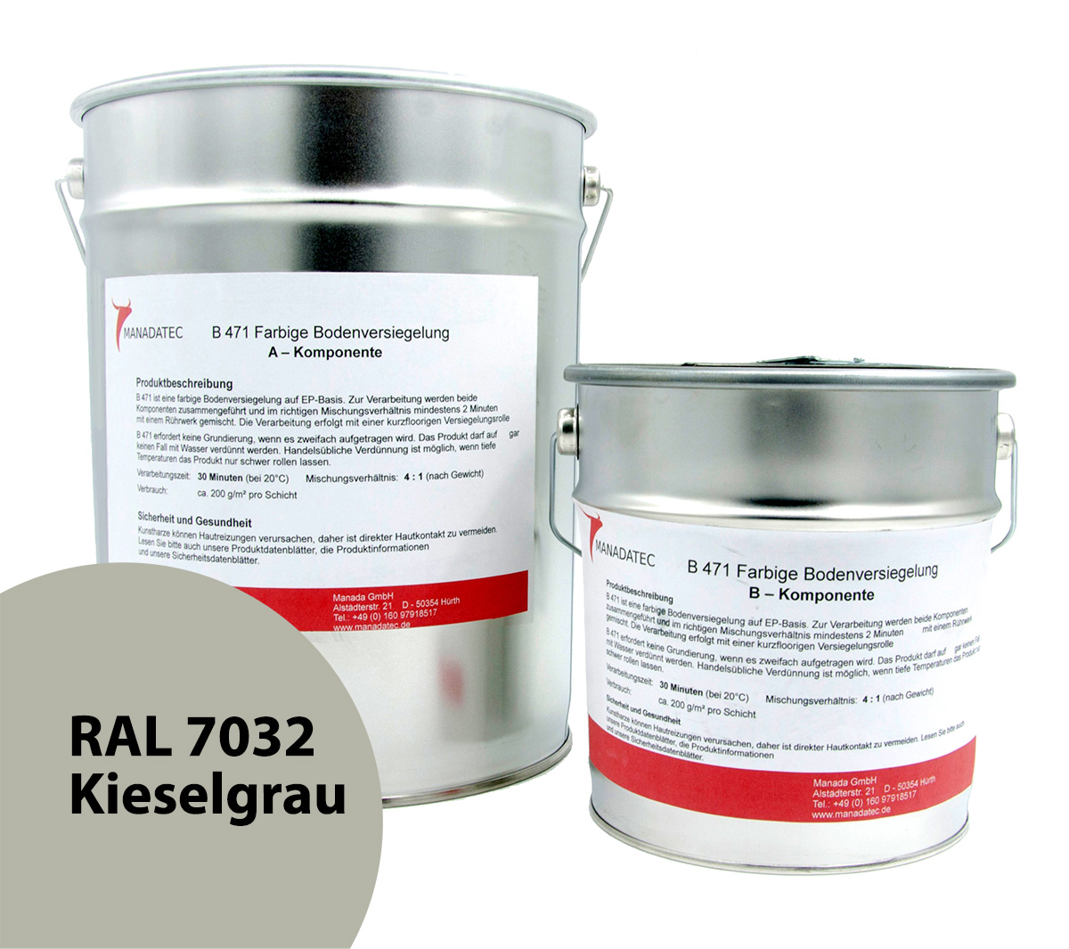 - 2K Epoxidharz Bodenbeschichtung Manadur B 471 in RAL 7032 Kieselgrau. Farbige 2-Komponenten Epoxidharz Bodenbeschichtung Roll-Bodenbeschichtung (zum Aufrollen).