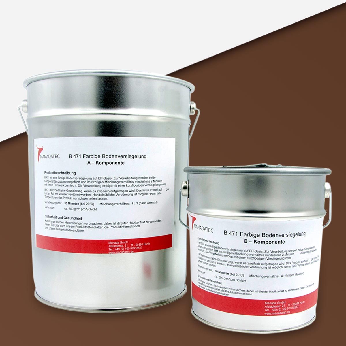 - 2K Epoxidharz Bodenbeschichtung Manadur B 471 in RAL 8011 Nußbraun. Farbige 2-Komponenten Epoxidharz Bodenbeschichtung Roll-Bodenbeschichtung (zum Aufrollen).