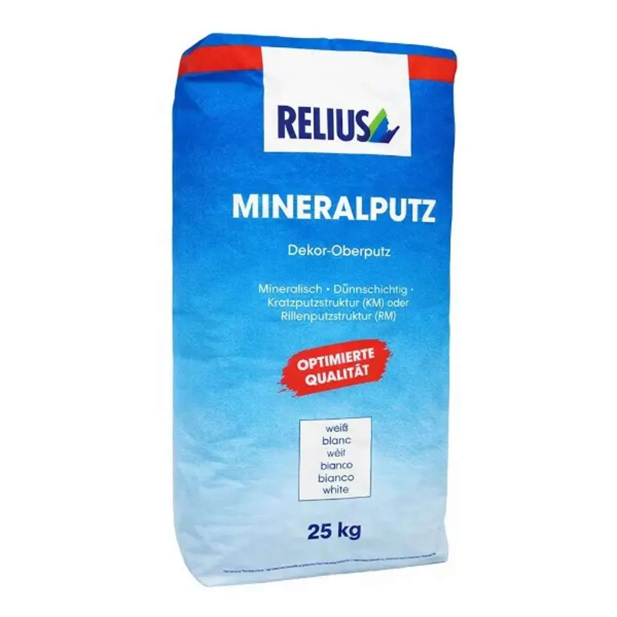 Relius Mineralputz RM ist ein Werktrockenmörtel CR, CS II, W2 nach DIN EN 998-1 (P II nach DIN V 18550) zur Herstellung von dünnschichtigen,